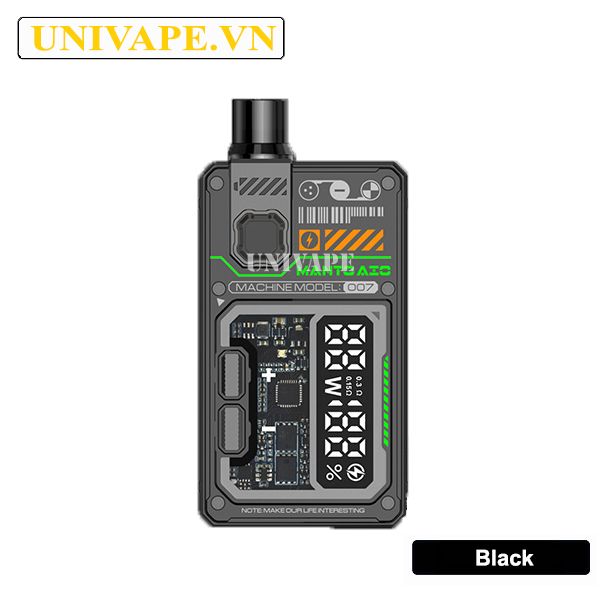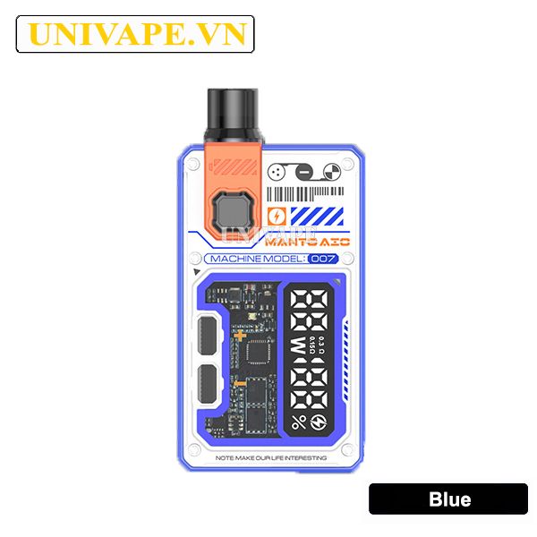 Manto AIO Plus 2 giữ lại thiết kế cơ bản từ các phiên bản trước với kiểu dáng Box mạnh mẽ nhưng được bổ sung lớp kính trong suốt ở mặt trước, tạo cảm giác tinh tế và hiện đại. Máy vẫn áp dụng thiết kế SBS (Side by Side) với pin đặt cạnh buồng đốt giúp tổng thể gọn nhẹ và tiện dụng cho người dùng. Sự phá cách còn đến từ họa tiết lấy cảm hứng công nghệ hiện đại kết hợp phong cách Gundam độc đáo nổi bật với dòng chữ “Machine Model: 007” phù hợp cho những vaper thích phong cách cá tính mạnh.